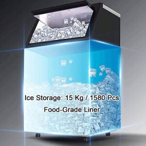 Eisbereiter 155LBS/24H mit 44LBS-Behälter, elektrischer Wasserablaufpumpe und Edelstahl-Gehäuse, transparenter Eiswürfel