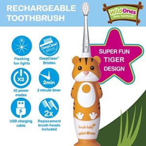 Brush-Baby WildOnes Kinder Elektrische Zahnbürste, 1 Griff, Bürstenkopf, USB-Ladekabel, 0-10 Jahre (Tiger)