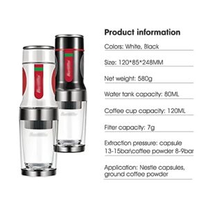 Tragbare Kaffeemaschine, Espressomaschine, Handpresse, Kapsel, gemahlener Kaffee (Color: Black)