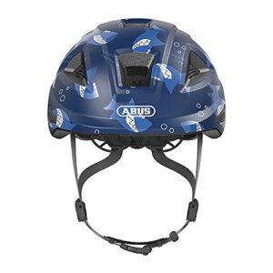 ABUS Kinderhelm Anuky 2.0 ACE – Fahrradhelm für Kleinkinder und Kinder – Blau mit Hai-Muster, Größe S, inkl. Licht und Kinnschutz.