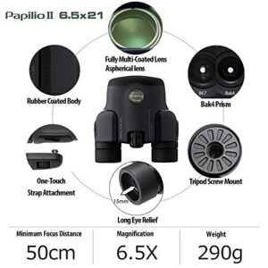 PENTAX Papilio II 6,5×21 Kompaktes Fernglas für Vogelbeobachtung, Reisen, Sport und Theater mit 50-cm-Nahsicht, komplett Mehrschichtvergütung und BAK4-Prisma für klare Sicht in Museen.
