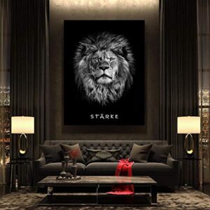 Hustling Sharks® Motivationsbilder XXL Wandbild STÄRKE – Premium Leinwandbild Hochformat (60 x 90 cm), Löwe Bild, Bilder Erfolg, Büro Bilder, Leinwand Motivation, Wandbild Spruch