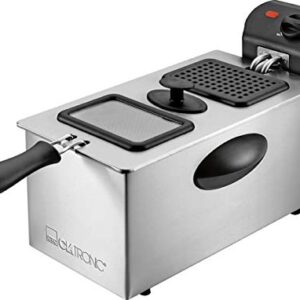 Clatronic Edelstahl-Fritteuse FR 3587 – 3L, 2000W, stufenlos regelbarer Thermostat, wärmeisolierte Tragegriffe, leichte Reinigung – edelstahl/schwarz