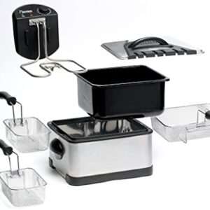 Bestron XL Öl-Fritteuse mit 3 Frittierkörben, Kaltzonentechnologie, herausnehmbarem Ölbehälter und 4 Litern Fassungsvermögen. Spülmaschinengeeignet und aus Edelstahl in silberner Farbe, mit 2000 W Leistung.