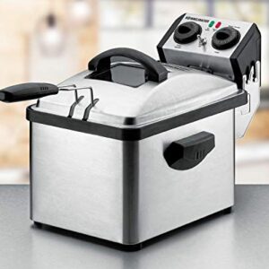 Rommelsbacher FRP 2135/E Kaltzonenfritteuse – 3,5 l Fassungsvermögen, stufenlos regelbare Temperatur bis 190°C, 30 Min. Zeitschaltuhr, zerlegbar zur Reinigung, Edelstahl