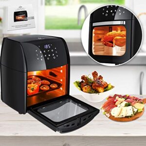 KESSER® XXL Airfryer 9in1 Heißluftfritteuse mit Drehgrill, Dörrautomat, Rezeptheft, Grillspieß, 1800 Watt und 8 Programmen. Fettfrei grillen ohne Öl. Inkl. Zubehör in Schwarz.