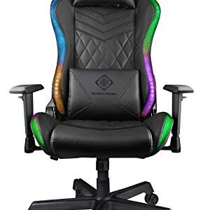 Gaming Stuhl Schwarz – KCREAM Gamer Stuhl – Bürostuhl – Zocker Ergonomischer Verstellbarer Drehstuhl – Schaukel Modus – mit Kopfstütze und Lendenwirbelstütze, 150kg Belastbar 12-Schwarz