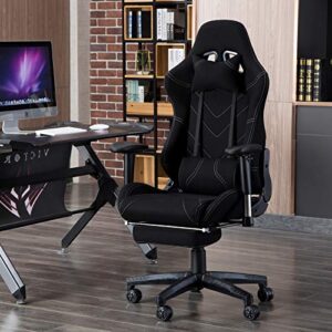WOLTU Racing Stuhl BS21sz – Gaming, Büro- und Schreibtischstuhl mit Kopf- und Lendenkissen, verstellbaren Armlehnen, Fußstütze und höhenverstellbar – Schwarz