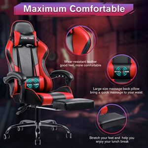 GTPLAYER Gaming Stuhl mit Massage, Fußstütze und Kopfstütze, ergonomisch gepolstert, rot