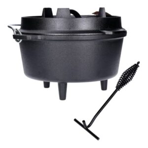 TP BBQ Dutch-Oven Set, 7-teilig mit Feuer-Topf, Dreibein, Pfanne, Grillrost, Zubehör & Holzkiste, ideal als Geschenk.