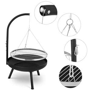 Schwenkgrill mit Feuerschale, Schwenkgrill, Holzkohlegrill, 70x70x120cm, inkl. Feuerschale, Grillrost und höhenverstellbarer Kette. Ideal zum Grillen und Heizen im Freien.