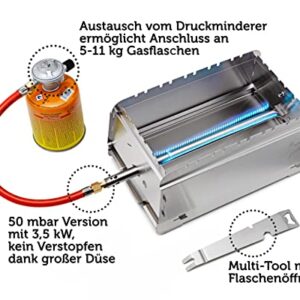 BRUZZ WILLI Gasgrill Fahrrad-Edition, 50 mbar, inkl. Plancha, 6er Spießset, Fahrradrucksack mit Kühlfach. 3,5 kW Leistung, herausziehbare Fettauffangschale, einfach auf- und abbaubar.