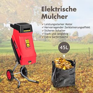 COSTWAY 2400W Elektrischer Gartenhäcksler mit 45L Auffangbeutel, Schredder max. 45 mm Aststärke.