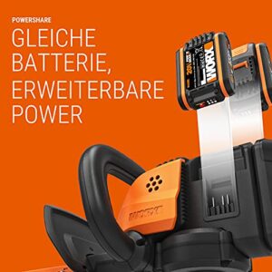 WORX WG284E.9 Akku Heckenschere 40V (2x20V) – Elektro Heckenschere mit 60cm Dual Schnittklingen – Inkl. Schutzköcher (ohne Akku & Ladestation)