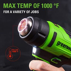 Greenworks 24V Heißluftpistole inkl. 4,0Ah Akku und Ladegerät, max. 538 °C, mit 3 Düsen für Zuhause, Garage und Freien.