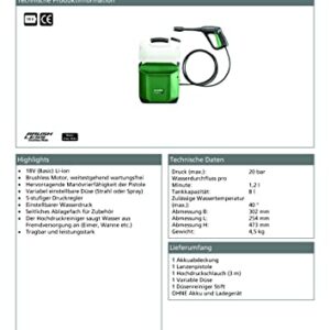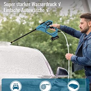 WESCO Akku Hochdruckreiniger 18V 2.0Ah, 5-in-1 Multi-Sprühdüse, 22 Bar, 6M Schlauch, Verlängerungslanze, Ladegerät, Garten und Außenreinigung