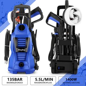 COOCHEER Hochdruckreiniger, Elektrischer Hochdruckreiniger Max. Druck: 135 Bar, All-in-One-Düse mit 5m Schlauch, 5m Kabel, Flächenreiniger für Auto, Haus, Himmelblau