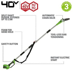 Greenworks Akku-Hochentaster G40PS20 (Li-Ion, 40V, 20cm Schwertlänge, 8 m/s Kettengeschwindigkeit, 3-teilige Aluminiumstange)