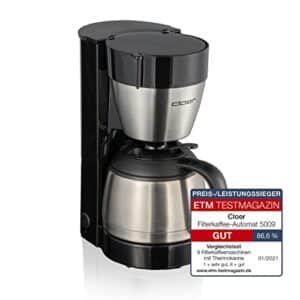 Cloer 5009 Filterkaffeemaschine mit Warmhaltefunktion für 8 Tassen, 800 W, Isolierkanne aus Edelstahl, Filterkanne 1×4, schwarz
