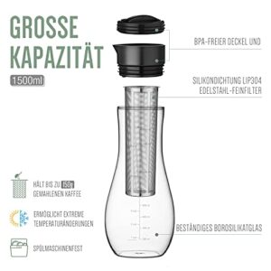 1,5L Cold Brew Kaffeebereiter mit luftdichtem Deckel, Eiskaffee-Glaskrugbrauer und Kaltbrühteekanne für trinkfertigen Eiskaffee, Tee und Fruchtgetränke.