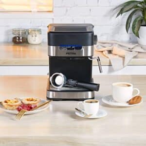 Petra PT4623VDEEU7 Barista Kaffeemaschine, 1,5L, Siebträger, Espresso, Milchaufschäumer, 15Bar, für 1-2 Tassen, Single/Double Shot, Cappuccino, 850W, BPA-frei
