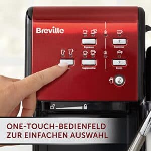 Breville Prima Latte II Siebträgermaschine für Milchkaffee und Cappuccino mit professioneller 19-Bar-Pumpe, Milchaufschäumer und in Rot (VCF109X).