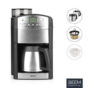 BEEM Filterkaffeemaschine mit Mahlwerk – Glas- und Isolierkanne | 24h-Timer | 1000 W | Warmhalteplatte