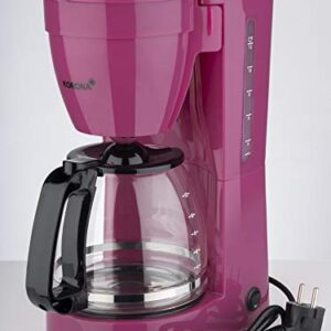 Korona 10119 Kaffeemaschine | Filter Kaffeeautomat | 12 Tassen | Glaskanne | Lila | 800 Watt, berry