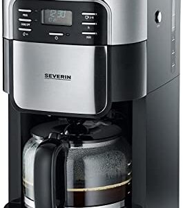 SEVERIN Kaffeemaschine mit Mahlwerk, Glaskanne und Timer-Funktion, 8 Tassen, 1000 Watt, schwarz/Edelstahl, KA 4810 & Automatik-Toaster, 850 W, Edelstahl/Schwarz, AT 2514