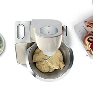 Bosch Küchenmaschine MUM5 CreationLine MUM58L20, Edelstahl-Schüssel 3,9 L, Mixer 1,25 L, Planetenrührwerk, Knethaken, Schlag- und Rührbesen Edelstahl, Durchlaufschnitzler, 3 Scheiben, 1000 W, grau.