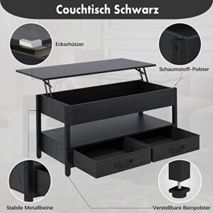 Ej.Victor Höhenverstellbarer und Ausziehbarer Couchtisch mit Stauraum, Smart Coffee Table, Wohnzimmertisch, Kaffeetisch Holz, 68.5 cm Höhe, Aufklappbar (Schwarz)