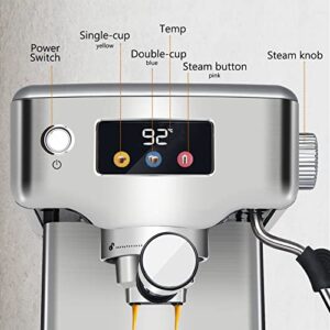 Homtone Espresso Siebträgermaschine 20 Bar, Edelstahl Halbautomat mit Milchaufschäumer für Cappuccino/Kaffee, 1350W, 1,8L Wassertank für Zuhause.
