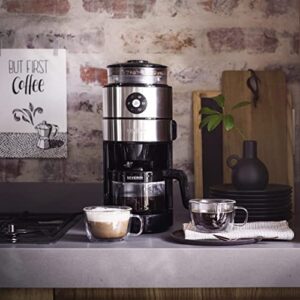 SEVERIN Kaffeeautomat mit Mahlwerk und Glaskanne, Kaffeebohnen und Filterkaffee, Automatische Abschaltung, bis zu 6 Tassen, KA 4811, Edelstahl/Schwarz