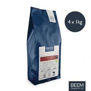 BEEM CAFÉ CREMA Ganze Bohne 4x 1 kg, Fairtrade & Bio Kaffeebohnen für Filterkaffee, Kaffeevollautomat & Siebträger.