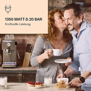 Klarstein Pausa Espressomaker – Siebträgermaschine mit 1350 Watt und 20 Bar Druck. Wassertank: 1,4 Liter Edelstahl, silber.