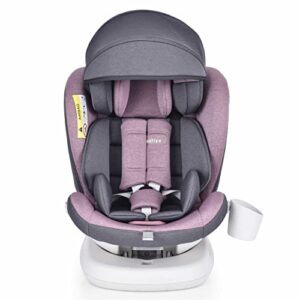 Daliya® Kindersitz ROTAZIONE 0-36 KG mit Isofix, Seitenaufprallschutz (SIP), Top Tether, 360° Drehung, 5 Punkt Gurt, Getränkehalter, Sonnenverdeck, Gruppe 0+ / I/II/III (Rosa)