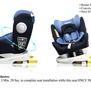 LETTAS Baby Autositz 360° drehbar Gr. 0+1/2/3 (0-36 kg/0-12 J.) mit Protektoren, Isofix & Top Tether ECE R44/04, Marine