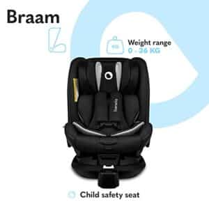 LIONELO Braam Kindersitz – Isofix, Stützfuß oder Autogurte – 0-36 kg – Rückwärts/Vorwärts – 360 Grad drehbar – Seitenschutz (Schwarz)