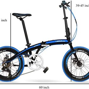 Aoyo 7-Gang Faltrad, 20″ Light Weight, Aluminium Rahmen, faltbar, Weiß, 5 Speichen, Größe 5 (Blue, Spokes)