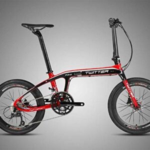 L.HPT 20-Zoll-Faltgeschwindigkeitsfahrrad aus Kohlefaser, BMX 20-Zoll-16-Gang-Doppelscheibenbremslicht, tragbar, weiß/rot.