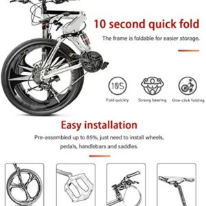 24-26 Zoll MTB Unisex Folding Pendler Fahrrad, 30-Gang-Gänge, Doppelscheibenbremse, weiß, A-Rad, 26“