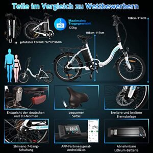 SEASON 20″ E-Bike Klapprad, Shimano 7 Gang-Schaltung, Elektro Stadtfahrrad mit LCD, 250W Hinterradmotor, 36V13Ah abnehmbare Batterie | E-Faltrad Spring A02 (Grau)