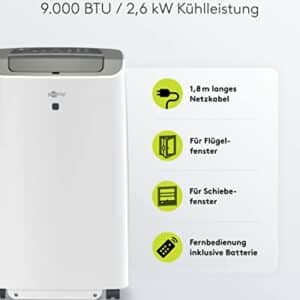 Goobay Mobiles Klimagerät 9000 BTU, 2m Abluftschlauch & Fensterabdichtung Set + Fernbedienung – 4in1 2600W Klimaanlage Weiß