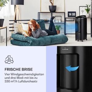 Klarstein 5-in-1 Air Cooler, leiser Ventilator, Luftbefeuchter & Nachtmodus, mobiles Klimagerät mit Wasserkühlung, Luftkühler 7 Liter, 330 m³/h, Schwarz