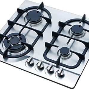 Phönix PS-604 Gaskochfeld Edelstahl 4 flammig LPG/Erdgas inkl. Gasschlauch-Regler Set für Propangasflaschen (freistehend-/Einbau-Gaskochfeld)