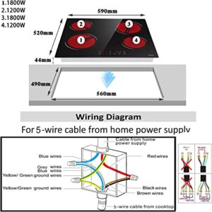 Glaskeramikkochfeld 4 Zonen Sensor-touch Control Autark 60cm, 6000W, 9 Leistungsstufen, verkabelt