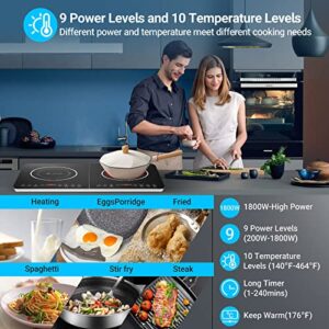 Aobosi Induktionskochfeld 2 Platten mit unabhängiger Steuerung, 10 Temperatur- und 6 Leistungsstufen, 3500W, 4-Stunden-Timer, Max & Min-Taste und Sicherheitssperre.
