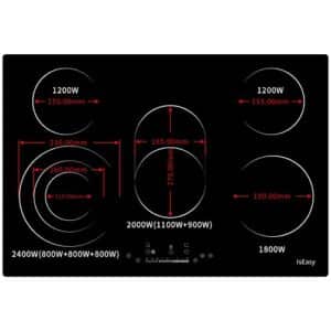 Glaskeramikkochfeld IsEasy, 77cm, 8600W, 5 Kochzonen, Verdrahtung, Einbau Keramikkochfeld mit 2 & 3 Kochzonen, 9 Heizstufen, Berührungssteuerung