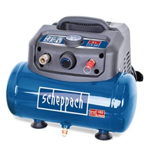 Scheppach Druckluftkompressor HC06 ölfrei, 6L Kessel, 8 bar Arbeitsdruck, 1200 Watt Leistung, 192 L/min Ansaugleistung, mobil & kompakt, inkl. 6-tlg. Zubehörset.