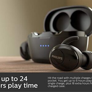 PHILIPS T3215BK/00 True Wireless Kopfhörer (Bluetooth In Ear, Sprachassistent, hohe Akkulaufzeit, Spritzwasserschutz IPX4, USB-C-Ladetasche) – Schwarz, 2020/2021 Modell